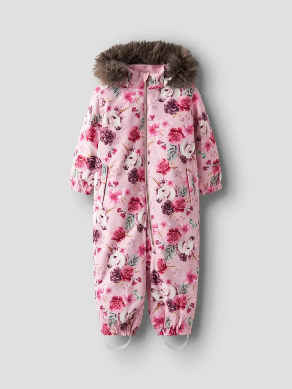 NMNSNOW10 Name it snowsuit ‘Parfait Pink FLORAL UNICORN’ insulation 180 g/m²